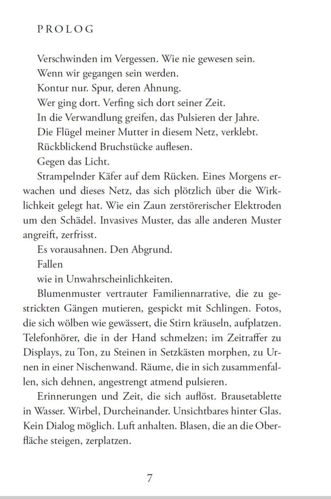 In den Kapiteln arbeite ich mit unterschiedlichen sprachlichen Mitteln. Jeder Text geht für mich von der Sprache aus. Sprache ist beim Schreiben für mich immer die Basis, nicht Handlung. Das Buch ist damit auch eine sprachliche Annäherung an eine Krankheit. Auch eine Form des Echos.